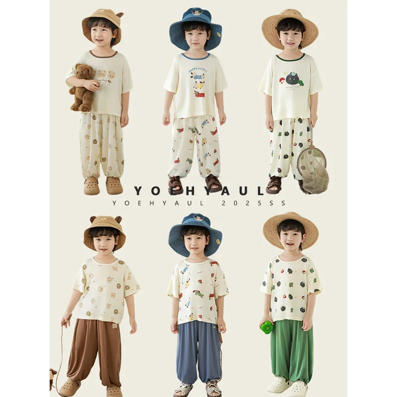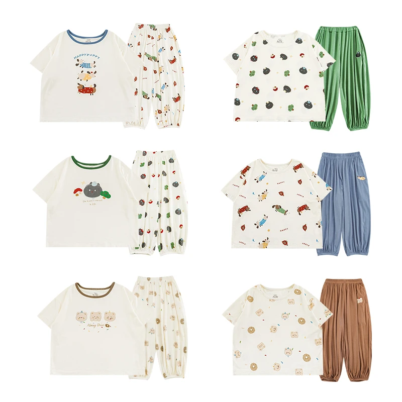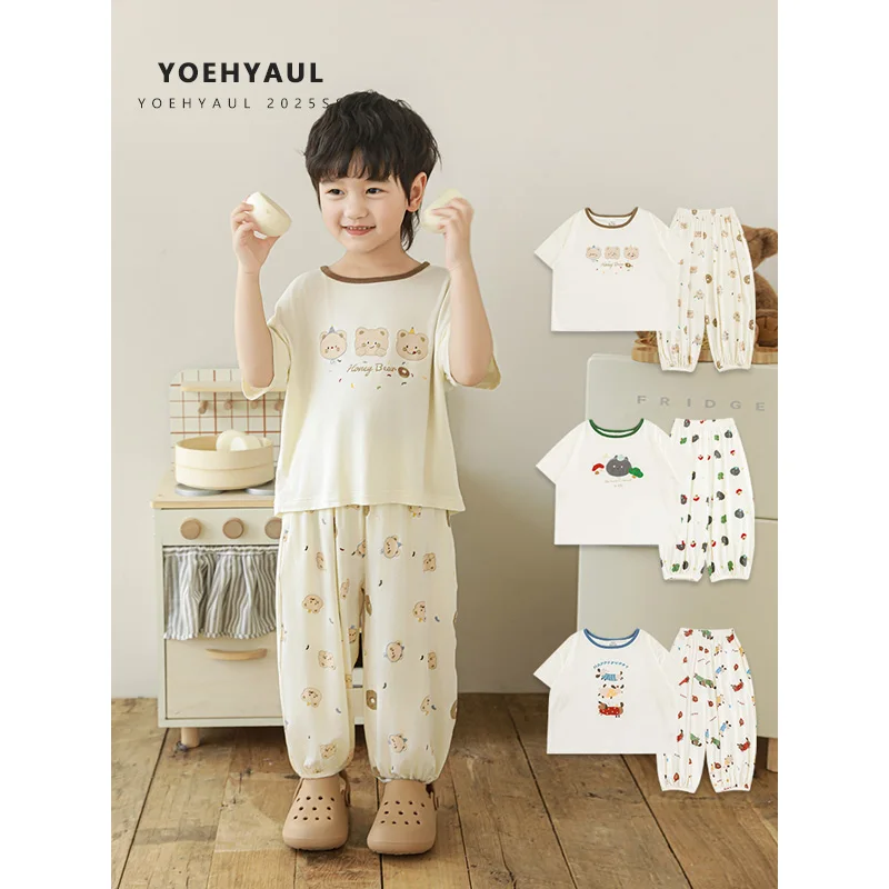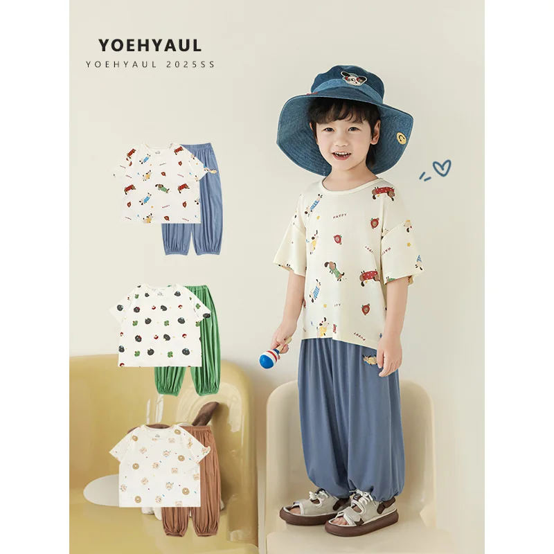 YOEHYAUL N6131 1-10Y Cute Children's Sleepwear Custom Logo Short Sleeve Elastic Boys Kids Summer Pajamas Homewear Toddler
